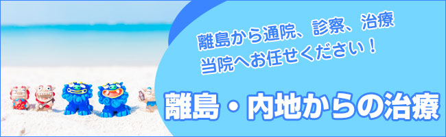 沖縄県全域からのご来院があります。離島や県外からも患者様がいらっしゃします。